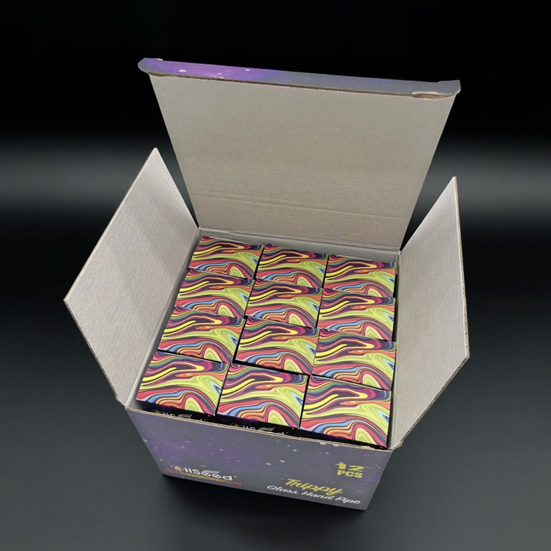 Showcase your collection with the OilSeed Premium Glass Pipe set — a curated pack of 12 high-quality hand pipes, neatly arranged in a ready-to-sell display box.