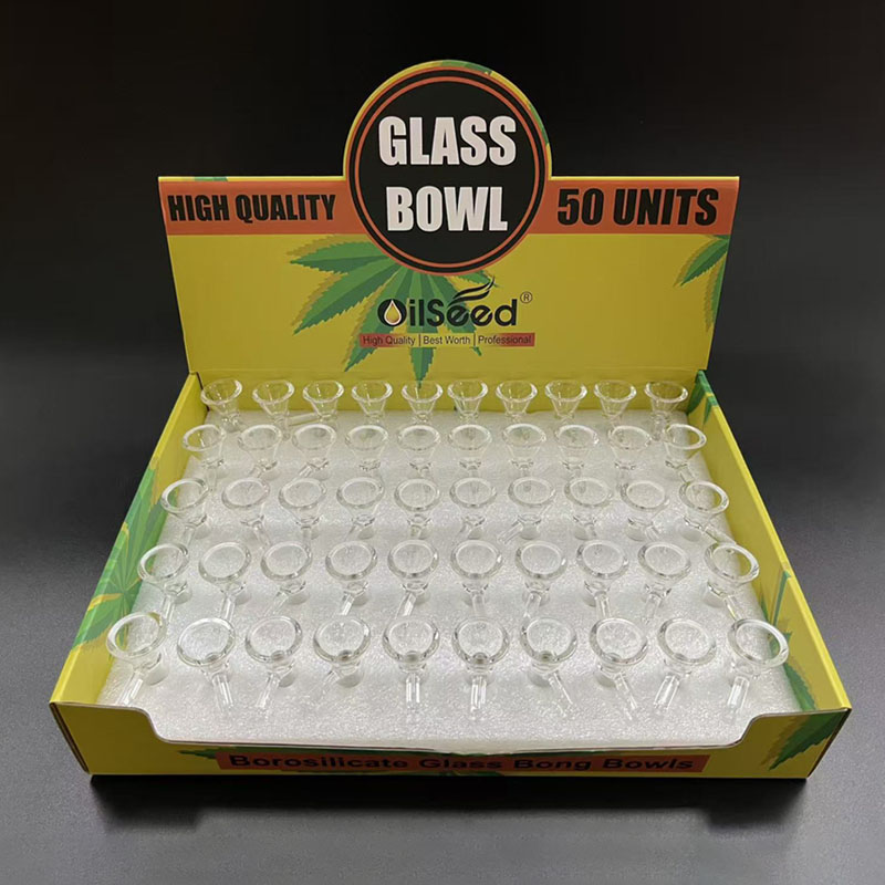 OilSeed Clear Glass Bowl – 14mm Male Joint | 50 PCS Display Box | 20 Displays per Case