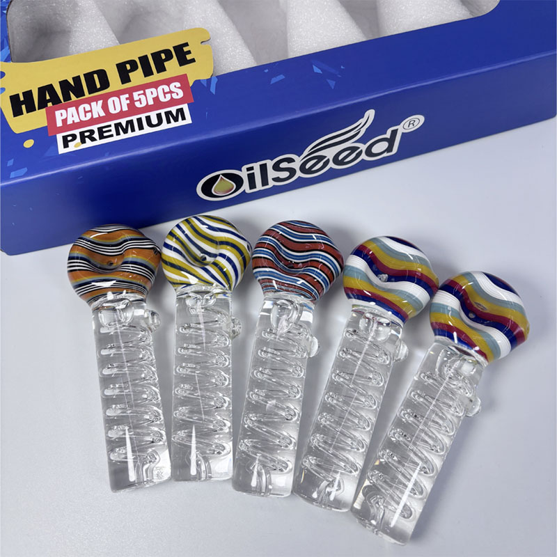 OilSeed 5" Freezable Glycerin Coil Glass Pipe – 5 PCS Pack | Borosilicate Glass | 20 Displays/Case
