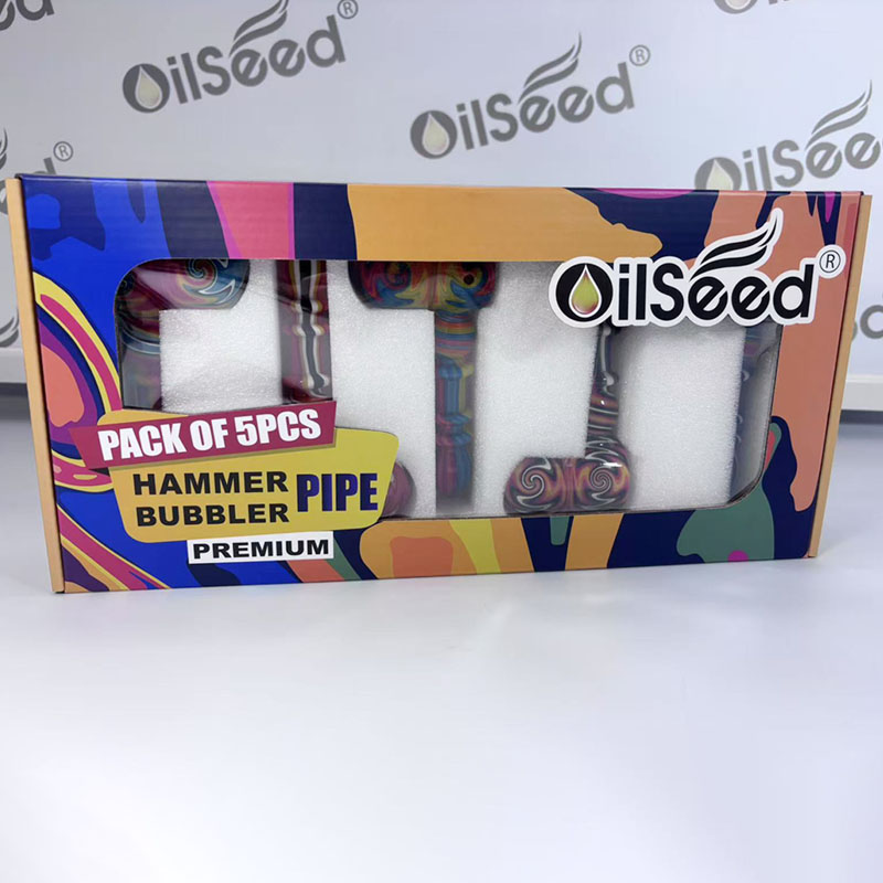 OilSeed Premium Wig Wag Hammer Pipe – Multicolor | 5.0" Length | 5 PCS Pack | 16 Displays/Case