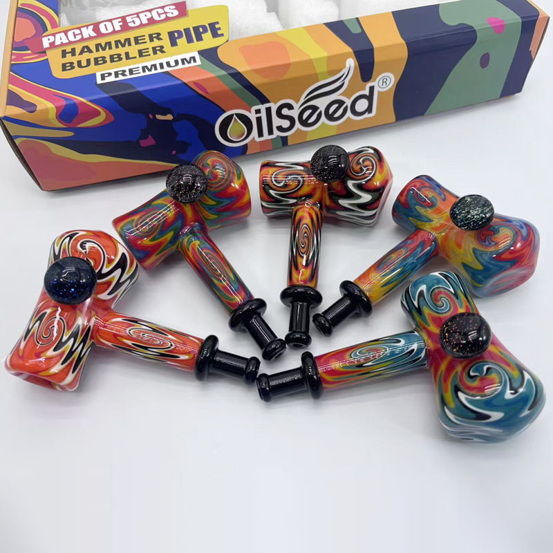 OilSeed 4.5" Full Wig Wag Dicro Hammer Bubbler Hand Pipe – 5 PCS Pack | 16 Displays/Case